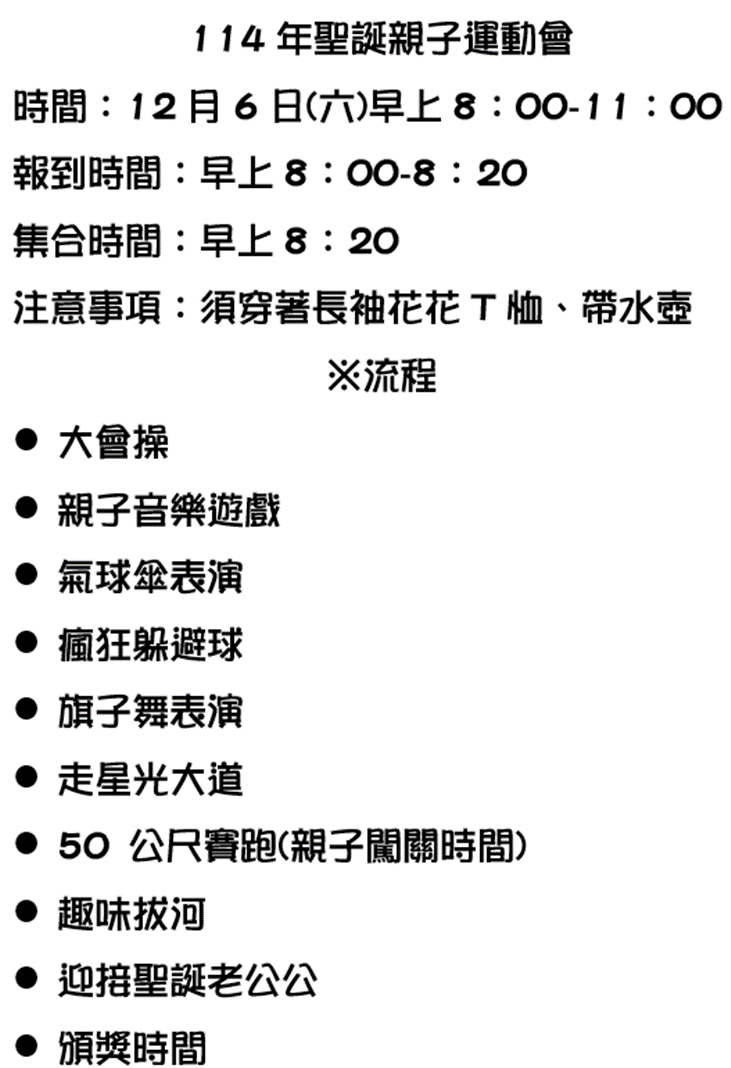 114年聖誕親子運動會-流程暨注意事項